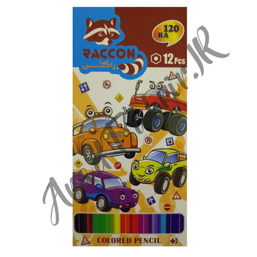 مداد رنگی 12 رنگ جعبه مقوایی راکون مدل ماشین ها