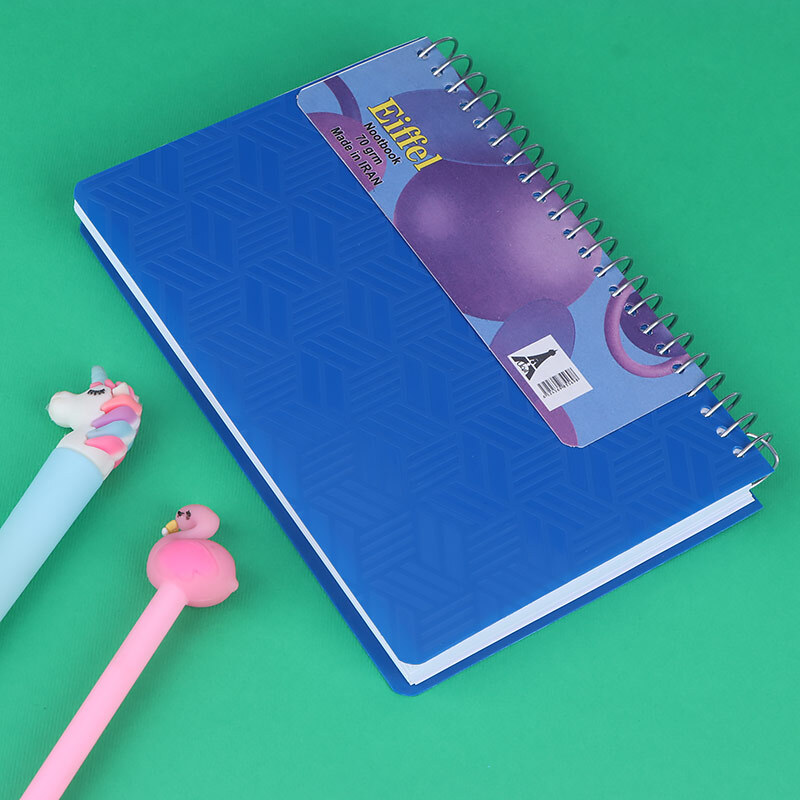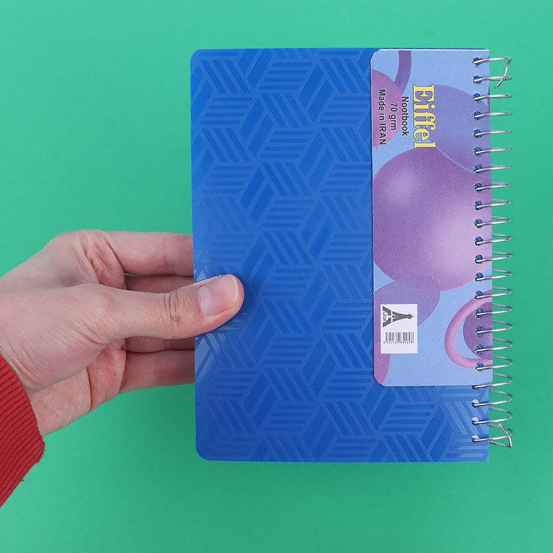 دارای جلد طلقی انعطاف پذیر و صحافی شده به صورت سیمی در فرم عمودی با وزن 70 گرم