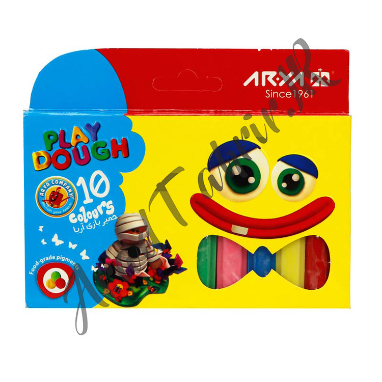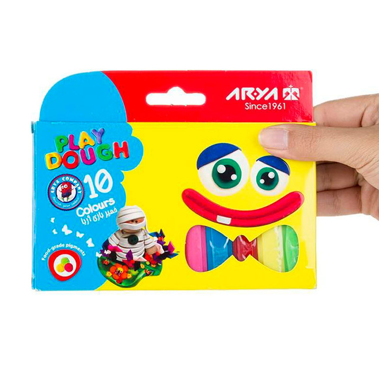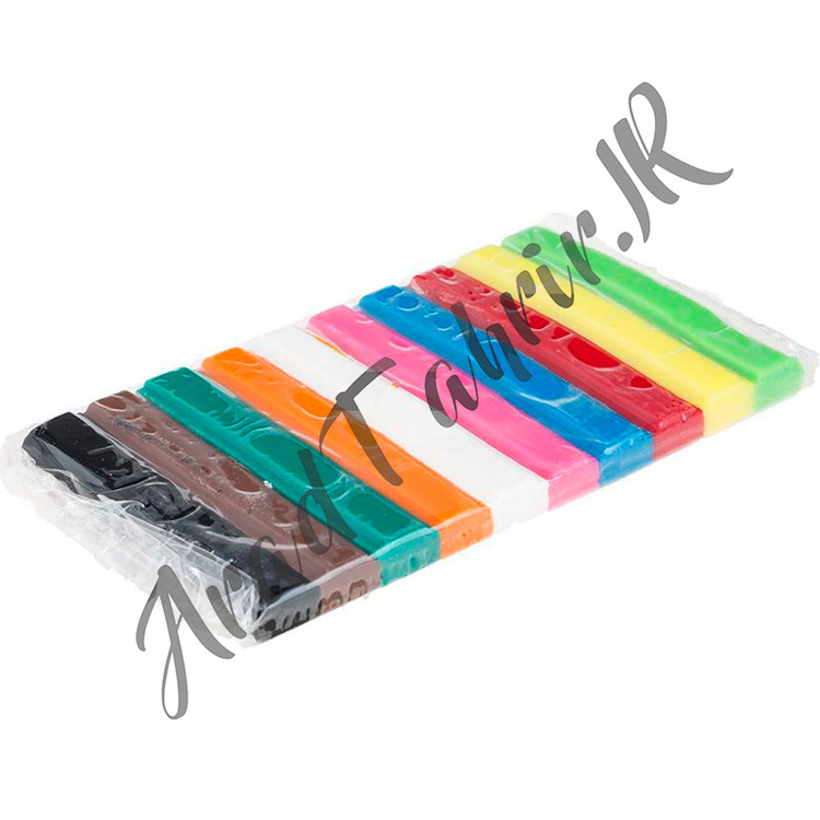 اقلام همراه: ۱۰ رنگ خمیر به طول ۷.۵ سانتی متر و ضخامت ۸.۵ میلی متر