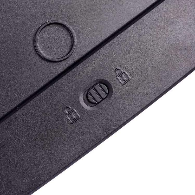 اگر در زمان نوشتار میخواهید نوشته شما با برخورد اشتباهی دست به دکمه زیرین محصول پاک نشود میتوانید دکمه قفل پشت محصول را بزنید که با این کار از پاک شدن ناخواسته طرح یا متن خود جلوگیری کنید. همچنین پایین محصول یک فضای خالی قرارگیری قلم وجود دارد که با قرارگیری قلم در آن بخش به راحتی میتوانید از قلم به عنوان استند استفاده کنید و تبلت را به صورت عمودی و افقی بر روی میز تحریر، میز کار و ... قرار دهید.