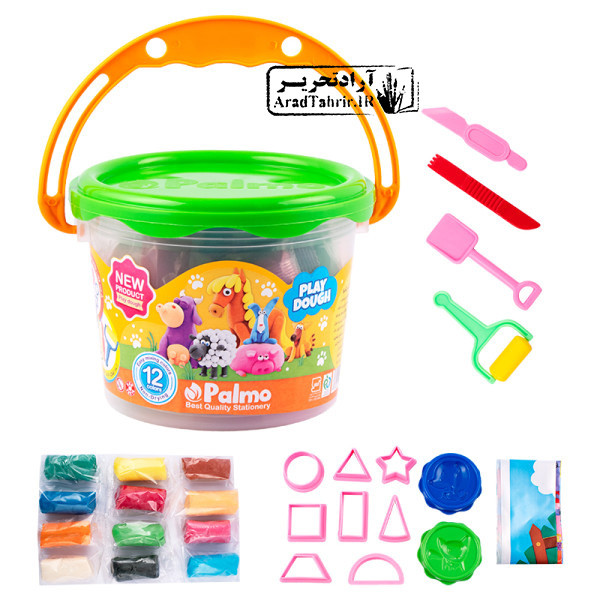 خمیر بازی 12 رنگ پالمو سطلی سبز نارنجی