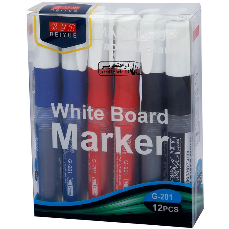 ماژیک وایت برد شارژی نوک تخت BYB Beiyue بسته 12 عددی