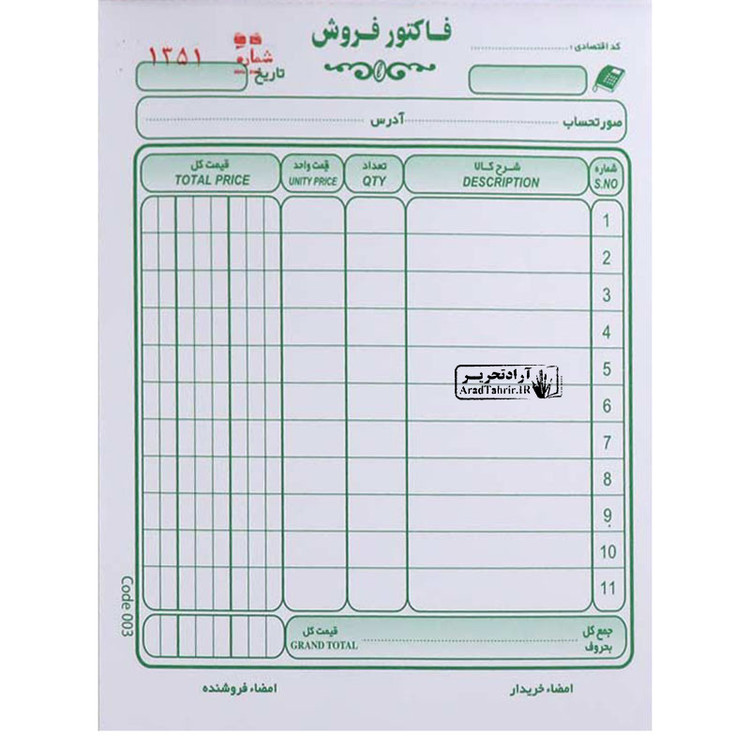 ابعاد برگه فاکتور: ۱۱٫۵ * ۱۶ سانتیمتر