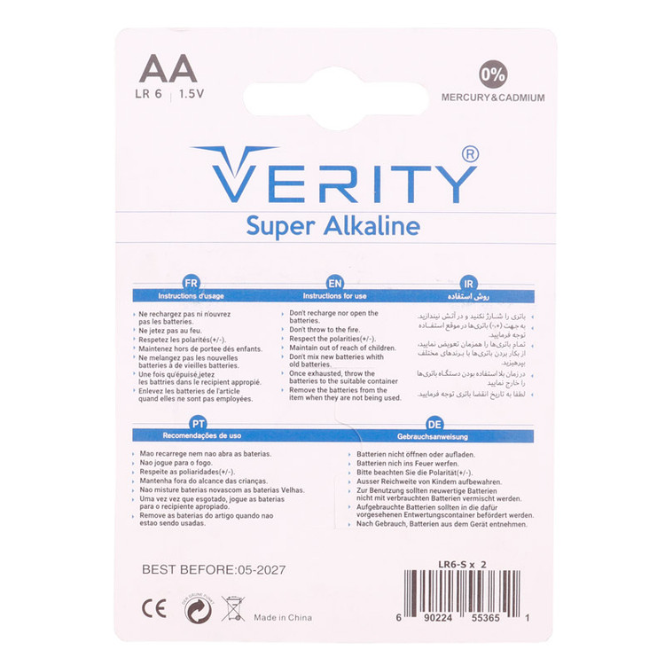 باتری قلمی ۲ تایی وریتی مدل Super Alkaline LR6 با ولتاژ ۱٫۵ ولت