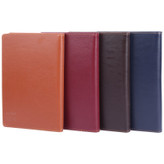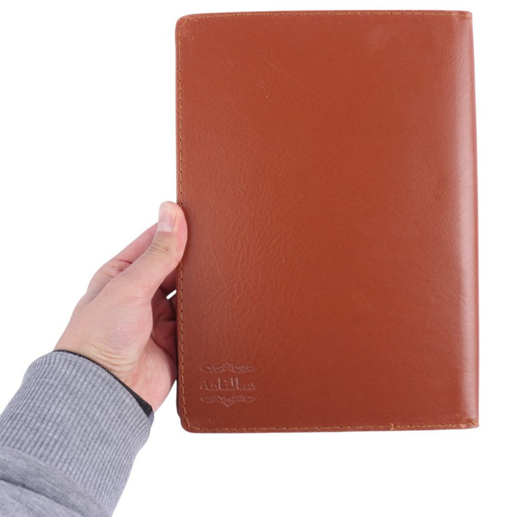 دارای جلد سخت با روکش چرمی، صحافی به صورت عمودی از نوع چسبی