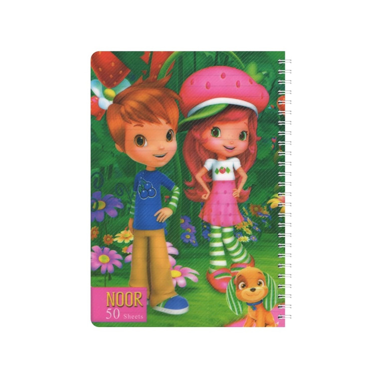 دفتر خطی سیمی 50 برگ جلد pp طرح دار نور (کارتن 150 عددی)