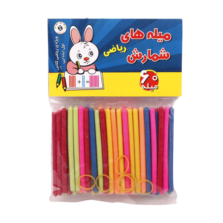 شامل ۶۰ عدد میله رنگی شمارش و ۶ عدد کش مخصوص دسته بندی اعداد