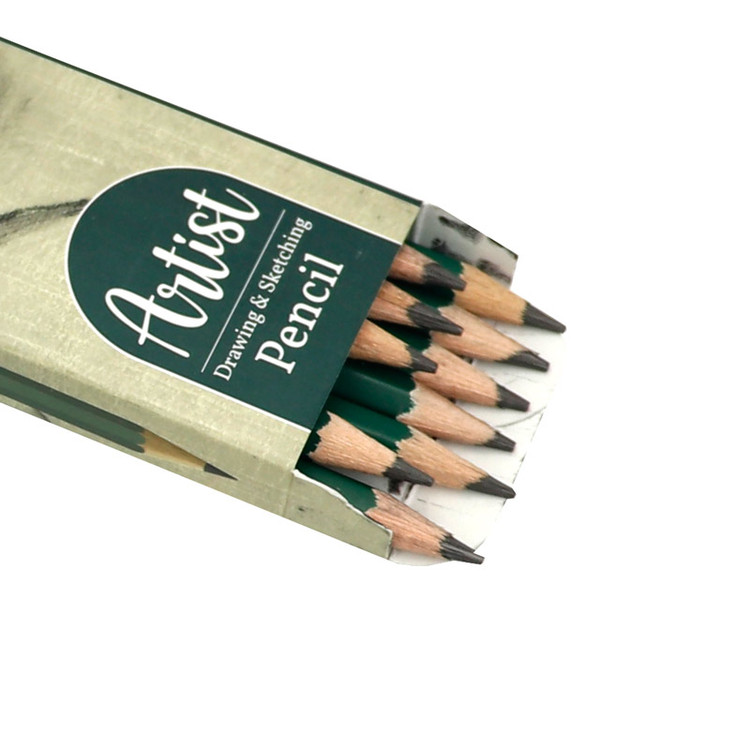 بدنه ساخته شده از جنس چوب مقاوم با امکان تراشیدن آسان و درجه سختی نوک ۶B تعداد ۱۲ عدد، با رنگ نوشتاری مشکی در جعبه ای مقوایی پررنگ و روان و مقاوم در برابر شکستگی