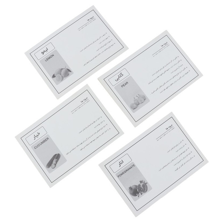 این کارت تصویری وسیله کمکآموزشی مناسبی برای کودکانی سن 2 الی 6 سال میباشد که قصد یادگیری میوه ها را دارند.