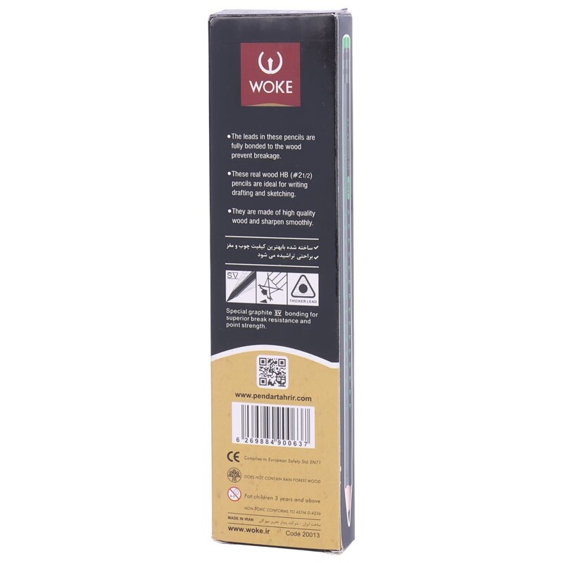 بدنه ساخته شده از چوب، مقاوم دربرابر شکستگی، دارای پاک کن در قسمت سری مداد
